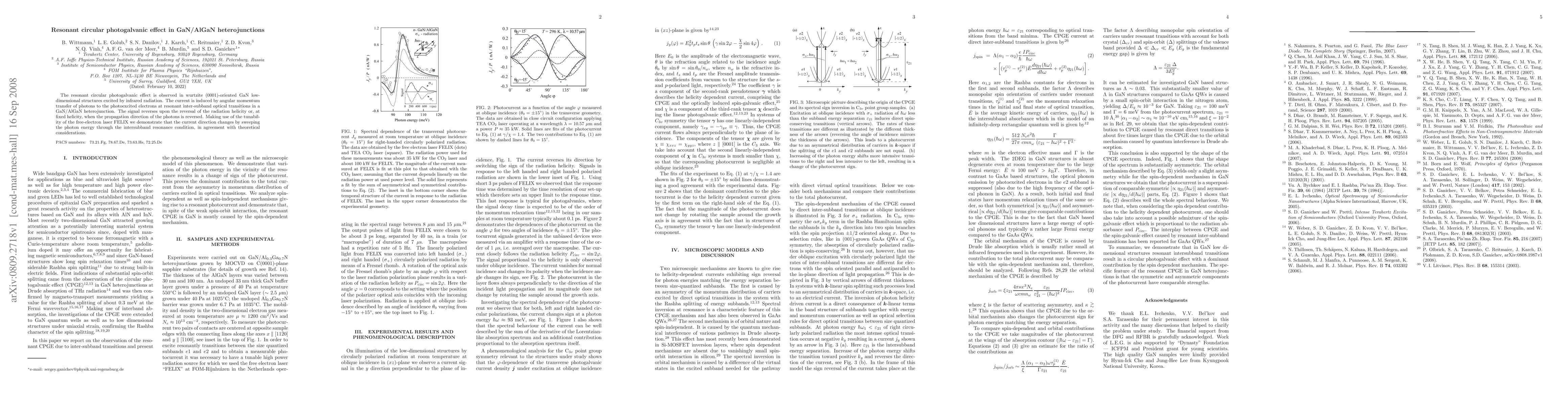 The research demonstrates the resonant circular photogalvanic effect in GaN/AlGaN heterojunctions, where infrared radiation induces a current via photon angular momentum transfer during inter-subband transitions. The current direction reverses with the radiation helicity or photon propagation direction, confirmed by tunable free-electron laser experiments.
