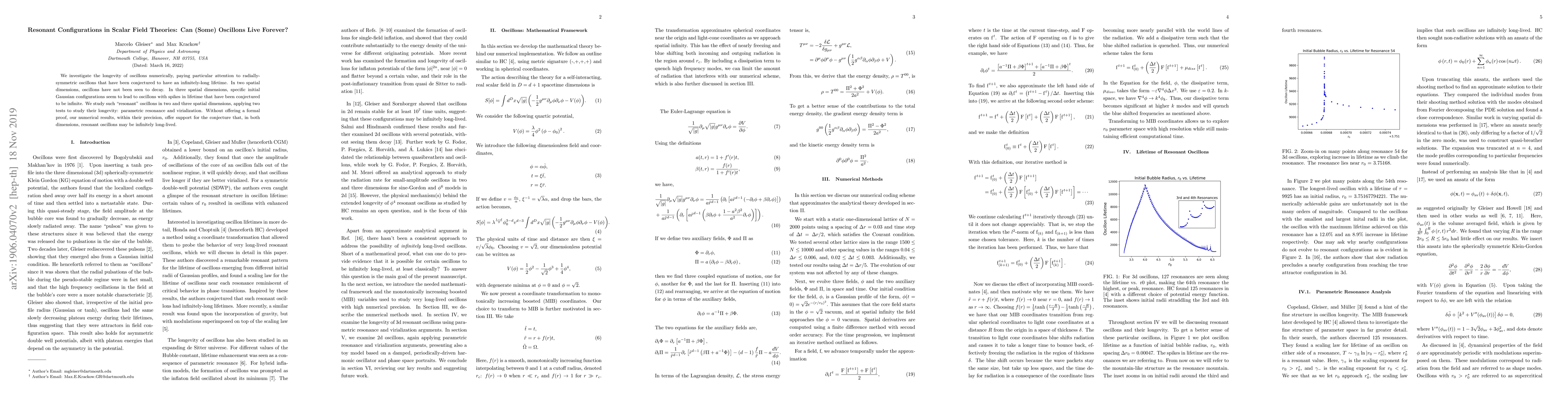 This paper numerically investigates the longevity of resonant oscillons in scalar field theories, focusing on their potential infinite lifetime. The study supports the conjecture that certain resonant oscillons in both two and three spatial dimensions may be infinitely long-lived, based on tests of parametric resonance and virialization.