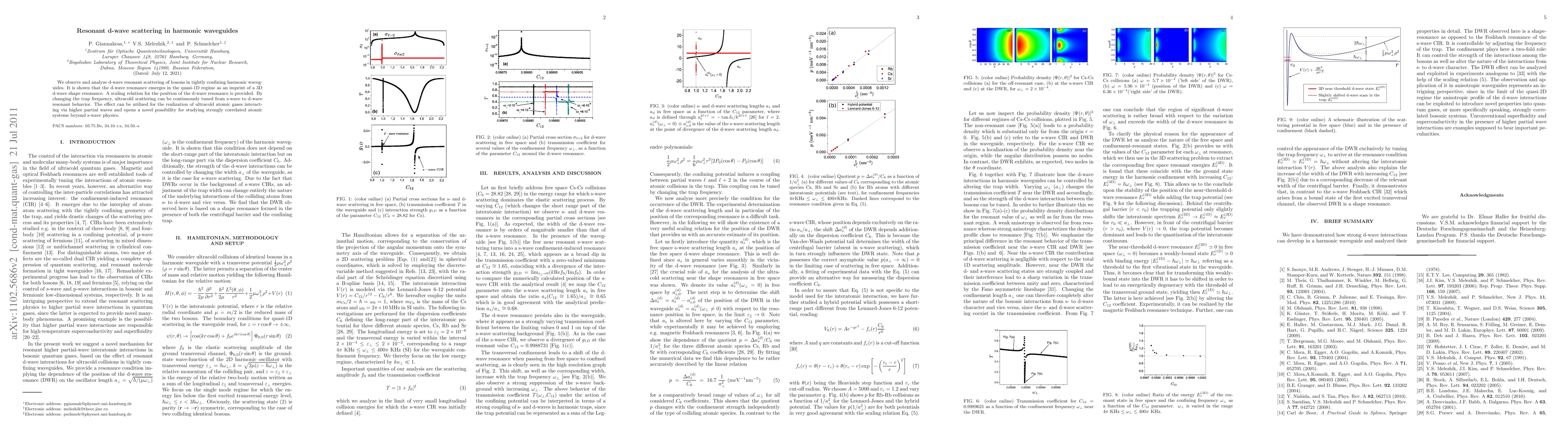 This paper investigates d-wave resonant scattering of bosons in harmonic waveguides, demonstrating that d-wave resonances emerge in the quasi-1D regime from a 3D d-wave shape resonance. The study provides a scaling relation for the resonance position and shows how trap frequency adjustments can tune scattering from s-wave to d-wave behavior, enabling the study of strongly correlated atomic systems beyond s-wave interactions.