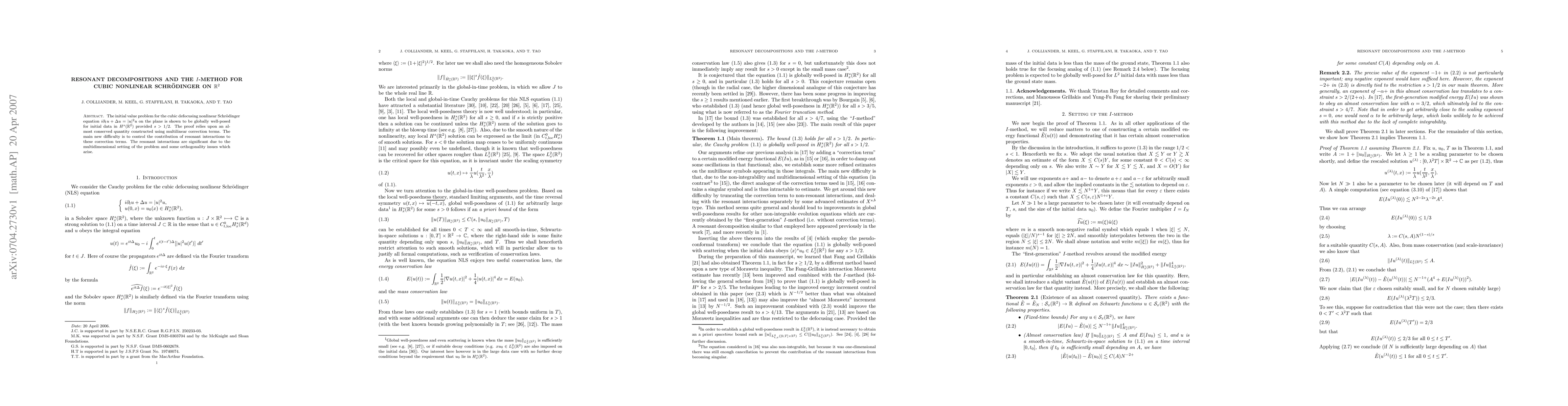 The initial value problem for the cubic defocusing nonlinear Schr\"odinger equation $i \partial_t u + \Delta u = |u|^2 u$ on the plane is shown to be globally well-posed for initial data in $H^s (\R^2)$ provided $s>1/2$. The proof relies upon an almost conserved quantity constructed using multilinear correction terms. The main new difficulty is to control the contribution of resonant interactions to these correction terms. The resonant interactions are significant due to the multidimensional setting of the problem and some orthogonality issues which arise.
