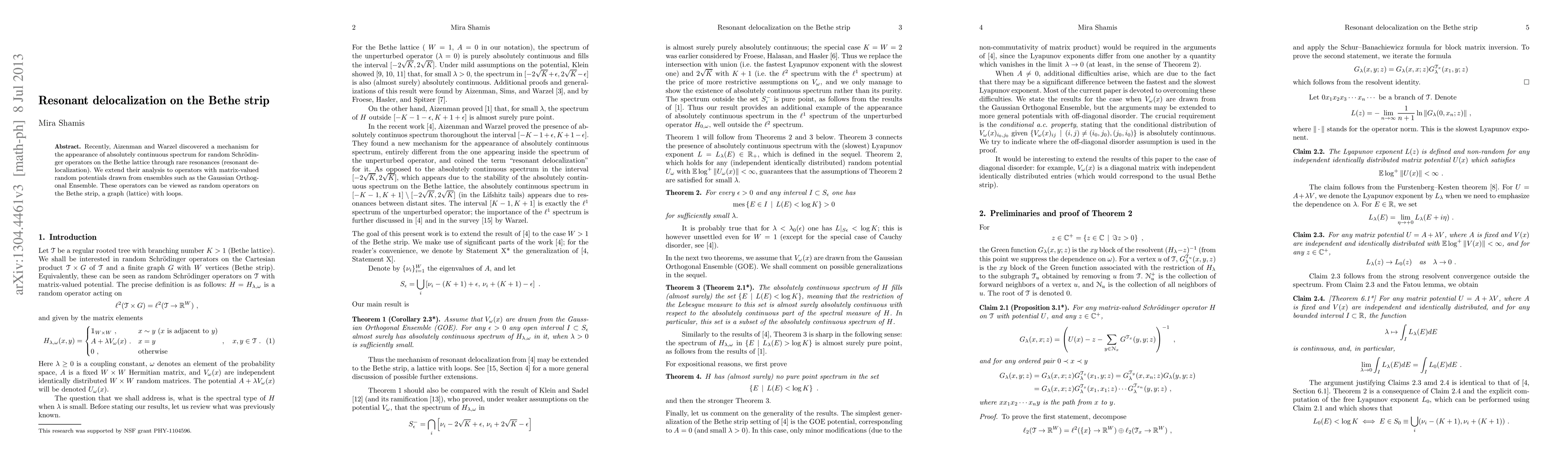 Summary: This paper extends the analysis of resonant delocalization to random Schrödinger operators on the Bethe strip, showing the emergence of an absolutely continuous spectrum through rare resonances, even for matrix-valued random potentials from ensembles like the Gaussian Orthogonal Ensemble.