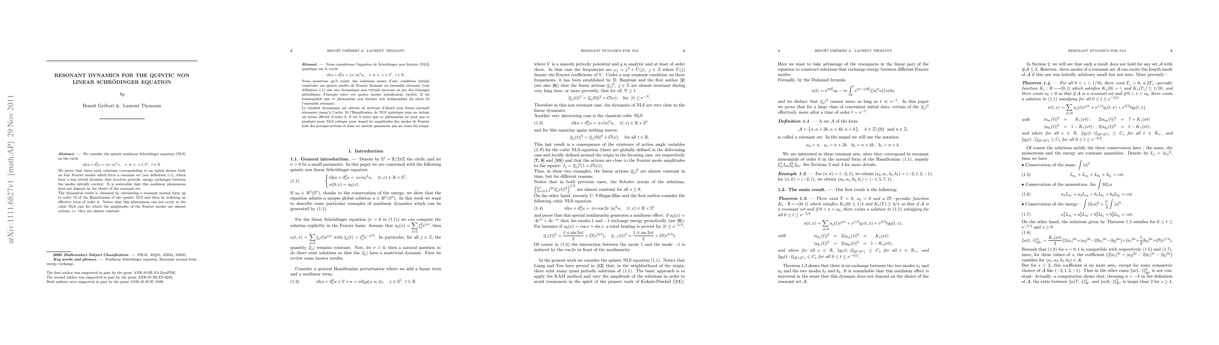 Researchers prove that a specific nonlinear Schr"odinger equation on the circle can exhibit periodic energy exchanges between initially excited Fourier modes, a phenomenon not seen in its cubic counterpart.