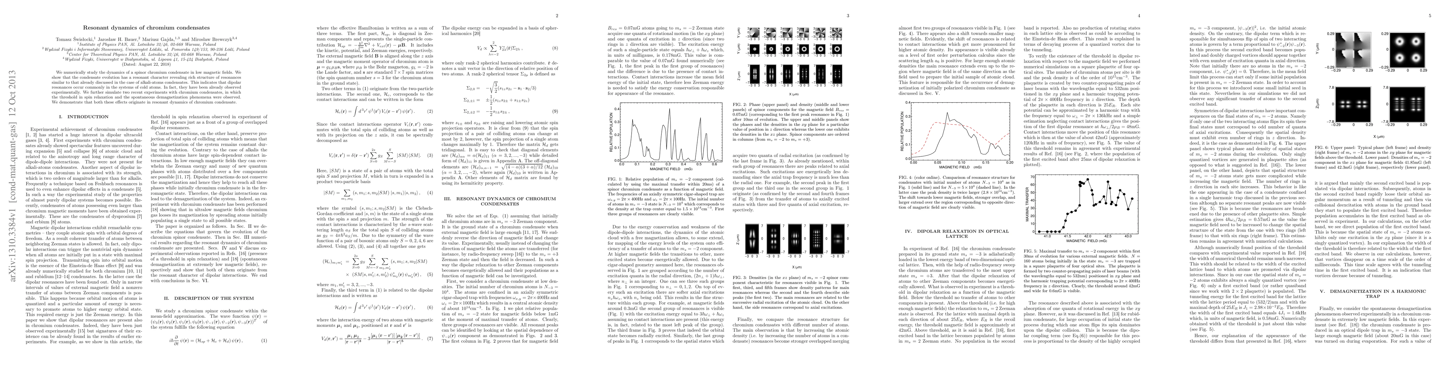 We numerically study the dynamics of a spinor chromium condensate in low magnetic fields. We show that the condensate evolution has a resonant character revealing rich structure of resonances similar to that already discussed in the case of alkali-atoms condensates. This indicates that dipolar resonances occur commonly in the systems of cold atoms. In fact, they have been already observed experimentally. We further simulate two recent experiments with chromium condensates, in which the threshold in spin relaxation and the spontaneous demagnetization phenomena were observed. We demonstrate that both these effects originate in resonant dynamics of chromium condensate.