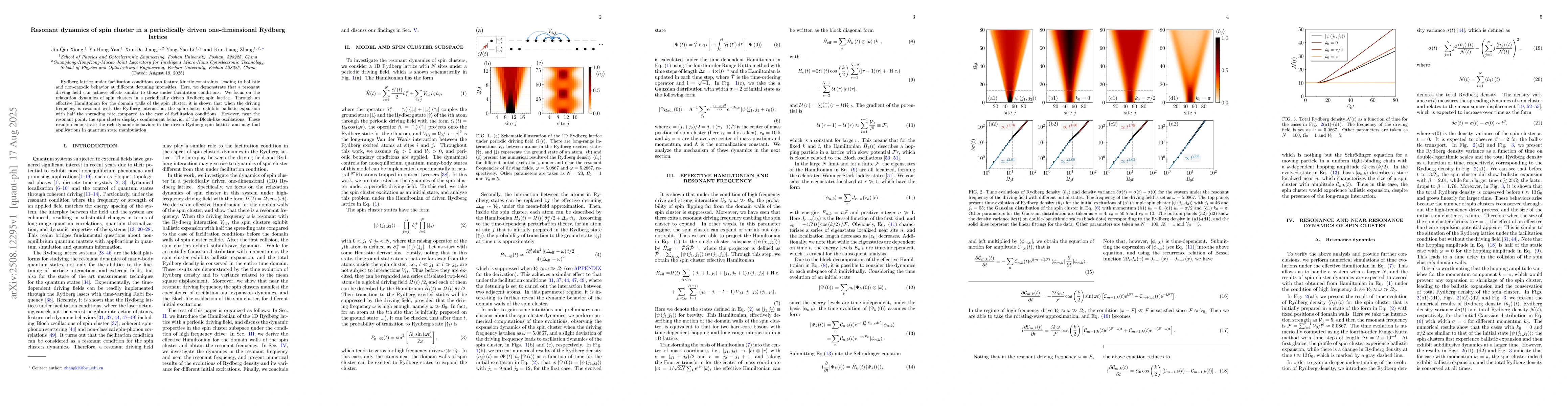 Rydberg lattice under facilitation conditions can feature kinetic constraints, leading to ballistic and non-ergodic behavior at different detuning intensities. Here, we demonstrate that a resonant driving field can achieve effects similar to those under facilitation conditions. We focus on the relaxation dynamics of spin clusters in a periodically driven Rydberg spin lattice. Through an effective Hamiltonian for the domain walls of the spin cluster, it is shown that when the driving frequency is resonant with the Rydberg interaction, the spin cluster exhibits ballistic expansion with half the spreading rate compared to the case of facilitation conditions. However, near the resonant point, the spin cluster displays confinement behavior of the Bloch-like oscillations. These results demonstrate the rich dynamic behaviors in the driven Rydberg spin lattices and may find applications in quantum state manipulation.