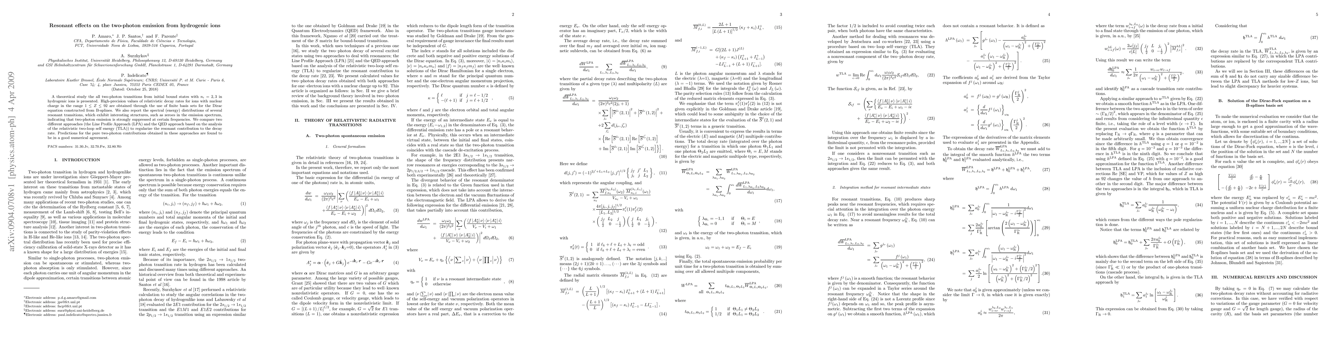 This paper presents a theoretical study of two-photon emission from hydrogenic ions with initial states ni = 2, 3, using high-precision relativistic decay rates derived from Dirac equation solutions. It reports spectral distributions showing resonant transitions with zeroes, indicating strong suppression at specific frequencies, and compares two regularization methods for these transitions.