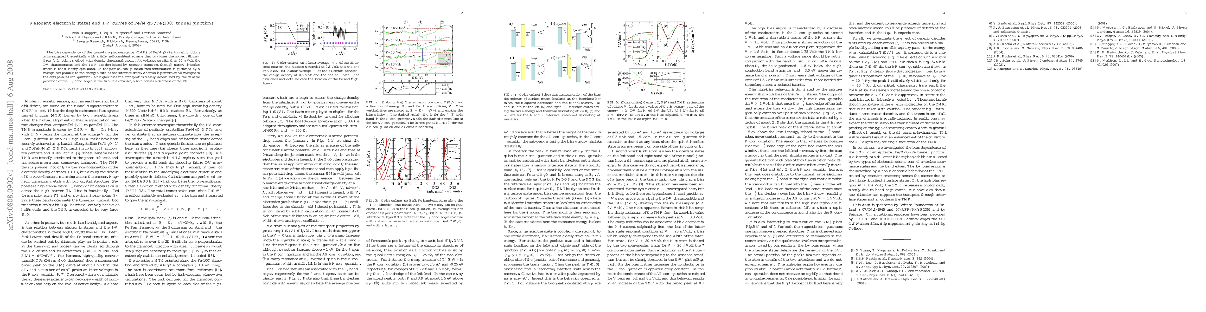 This study uses a combined non-equilibrium Green's functions and density functional theory approach to investigate Fe/MgO/Fe tunnel junctions. It finds that at low voltages (<20 mV), minority spin interface states dominate I-V characteristics and TMR, persisting in anti-parallel configurations. At higher voltages, TMR decrease is attributed to the relative positions of $Delta_1$ band-edges in Fe electrodes.