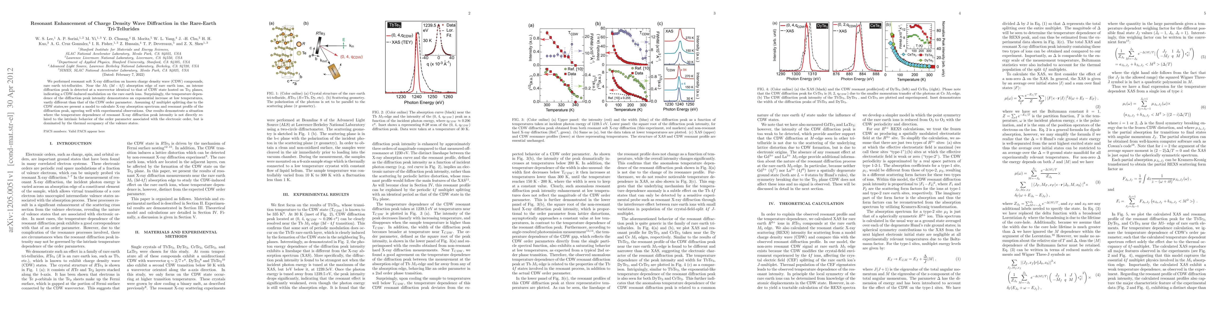 This study reveals resonant soft X-ray diffraction peaks in rare-earth tritellurides near the $M_5$ absorption edge, showing a CDW-induced modulation on rare earth ions. The temperature dependence of the diffraction peak intensity exhibits an unexpected exponential increase at low temperatures, indicating that the peak's intensity is influenced more by thermal occupancy of valence states than by the intrinsic CDW order parameter.