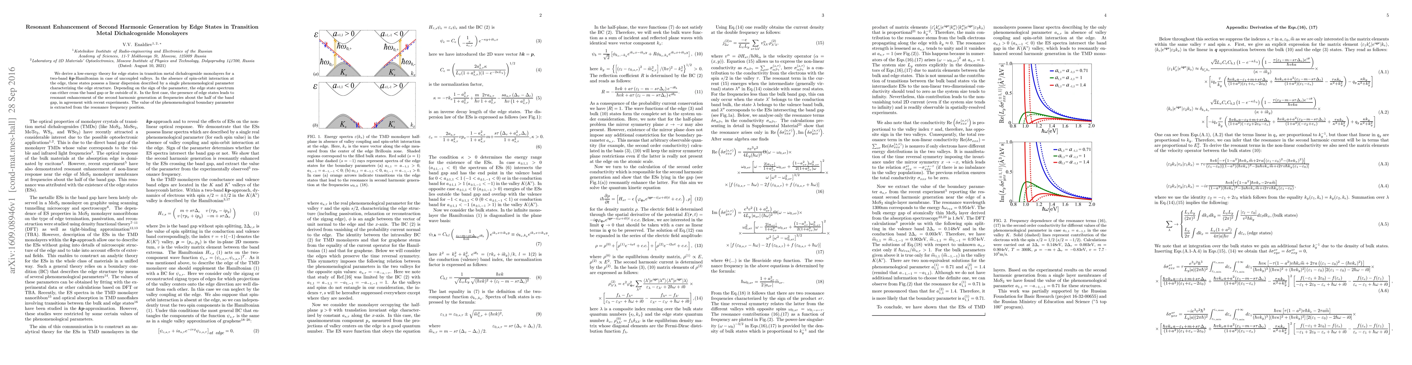 This research develops a low-energy theory for edge states in transition metal dichalcogenide monolayers, showing that these states can lead to resonant enhancement of second harmonic generation due to their interaction with the band gap, which aligns with recent experimental observations. The boundary parameter's value is determined from the resonance frequency.