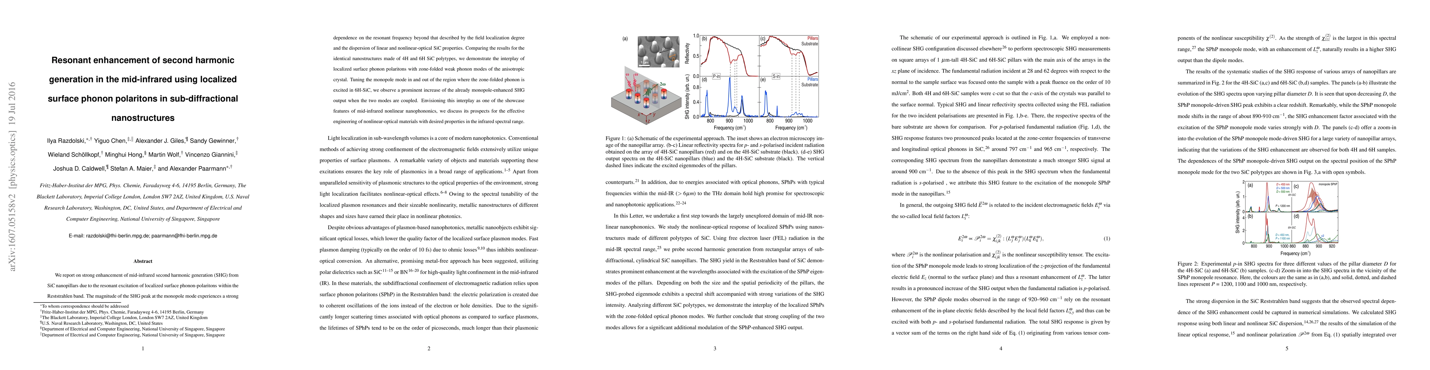 This paper demonstrates significant enhancement of mid-infrared second harmonic generation via localized surface phonon polaritons in SiC nanopillars, showing a strong dependence on resonant frequency. The coupling of monopole modes with zone-folded phonon modes in 6H-SiC further amplifies the effect, highlighting potential for advanced nonlinear-optical material engineering in the infrared.