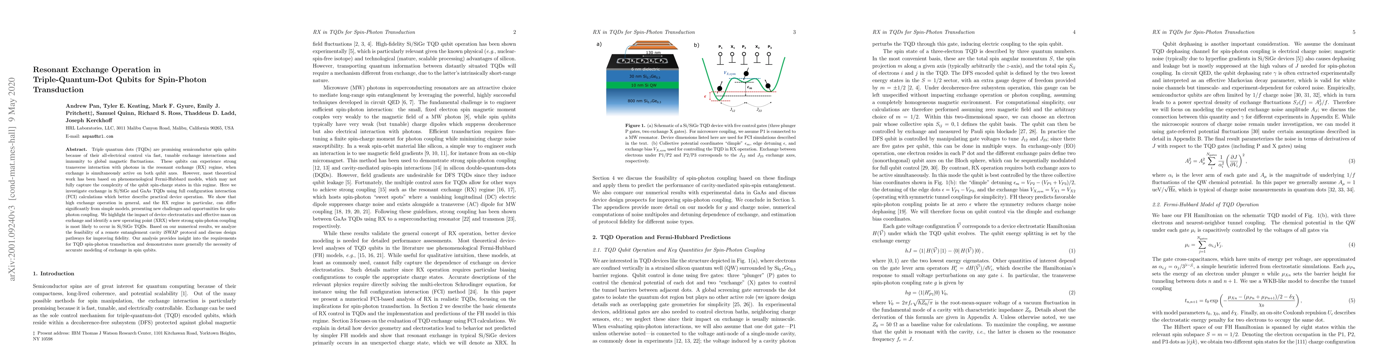 Researchers investigate the exchange operation in triple-quantum-dot qubits for spin-photon transduction, finding that it can differ significantly from simple models and requiring accurate modeling of exchange for successful coupling.