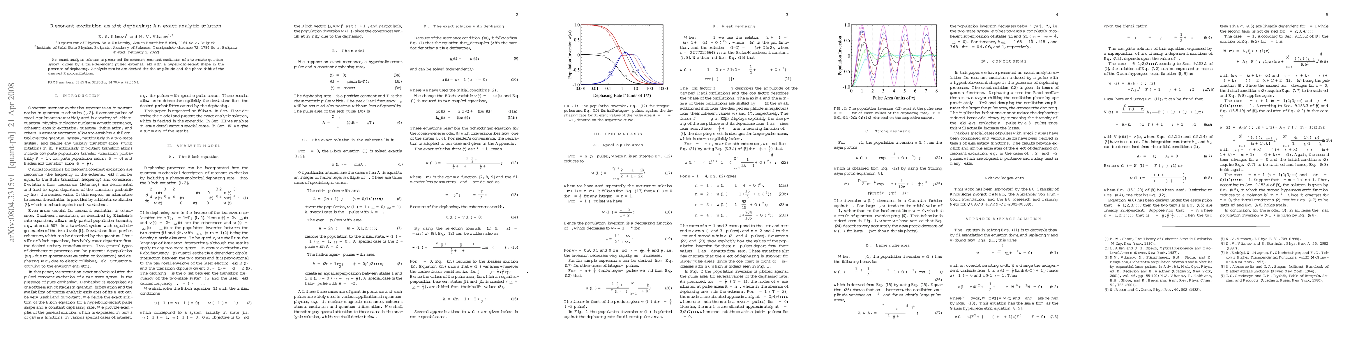 This paper presents an exact analytic solution for a two-state quantum system subjected to hyperbolic-secant pulsed fields, detailing the amplitude and phase shift of damped Rabi oscillations in the presence of dephasing. The results provide a comprehensive understanding of resonant excitation dynamics under decoherence effects.