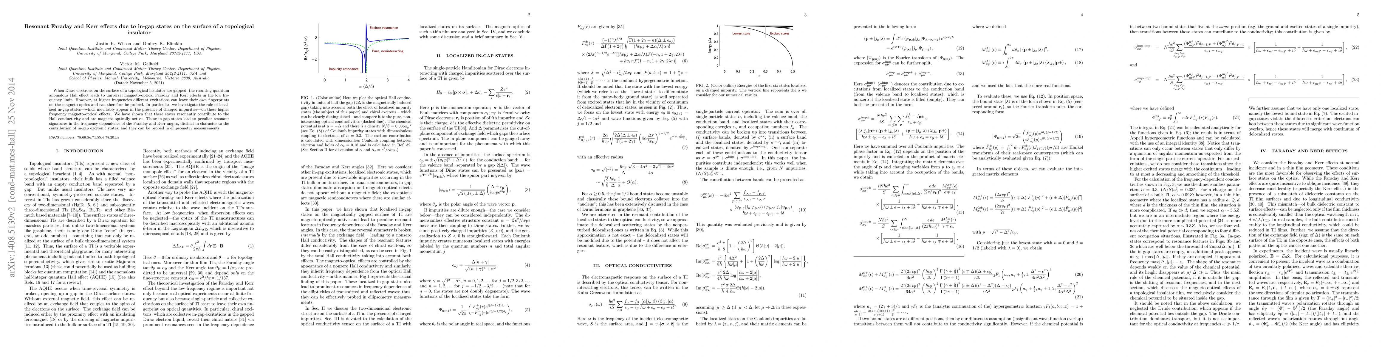 This paper investigates the resonant Faraday and Kerr effects due to localized in-gap states on the surface of a topological insulator, revealing their unique contributions to magneto-optical responses at higher frequencies and distinct resonant signatures detectable via ellipsometry.