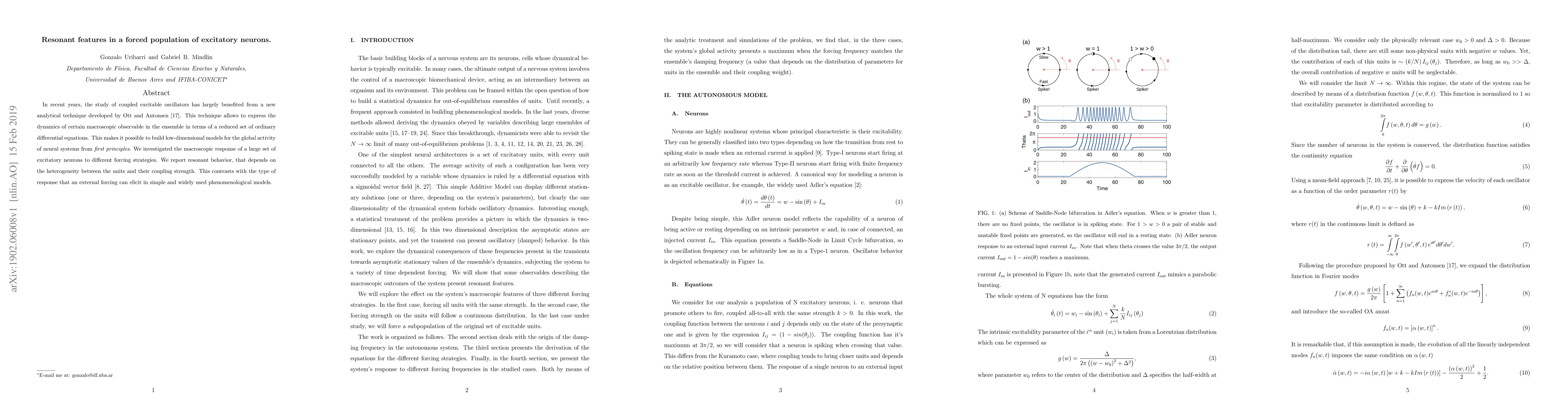 A study on a large set of excitatory neurons found resonant behavior in response to different forcing strategies, depending on the heterogeneity between units and their coupling strength.