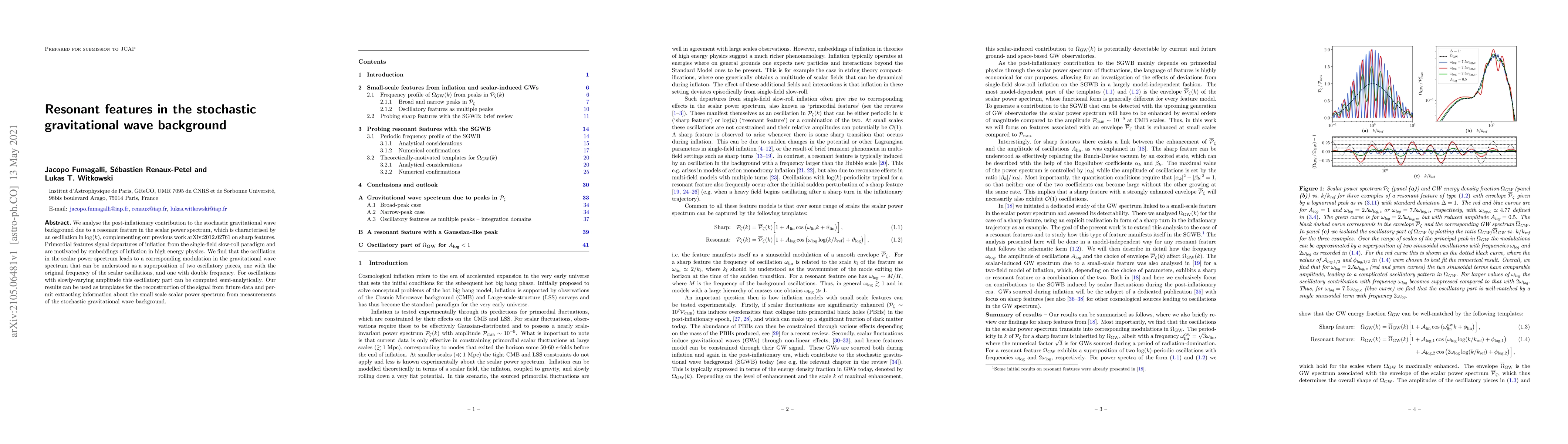 This paper investigates the post-inflationary stochastic gravitational wave background influenced by resonant features in the scalar power spectrum, revealing a modulation in the gravitational wave spectrum due to oscillations. The findings provide templates for future data analysis and can extract information about the small scale scalar power spectrum from gravitational wave measurements.