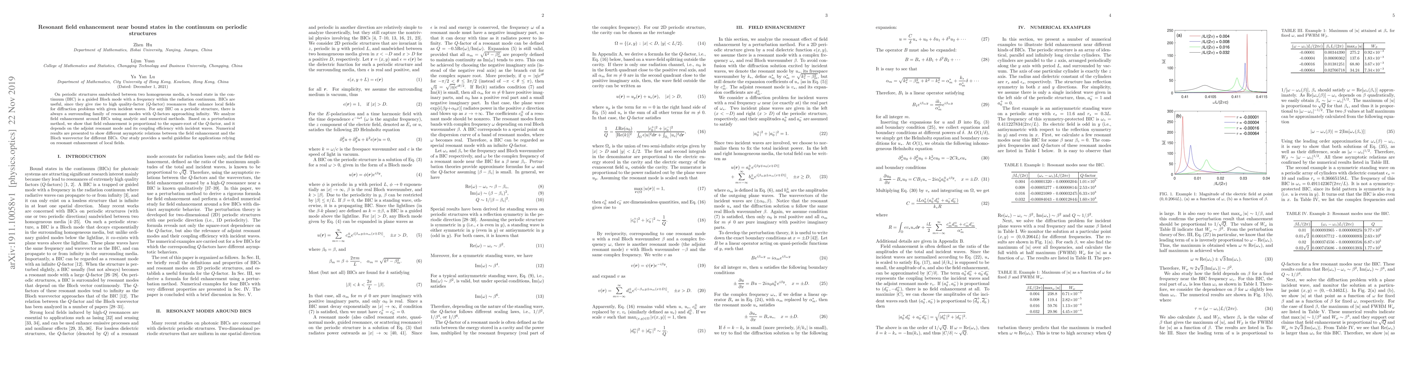 This paper investigates the resonant field enhancement near bound states in the continuum (BIC) on periodic structures, demonstrating that high-quality-factor ($Q$-factor) resonances significantly boost local fields. The study reveals that field enhancement is proportional to the square-root of the $Q$-factor and depends on the coupling efficiency of the adjoint resonant mode with incident waves, providing a guideline for applications leveraging resonant field enhancement.