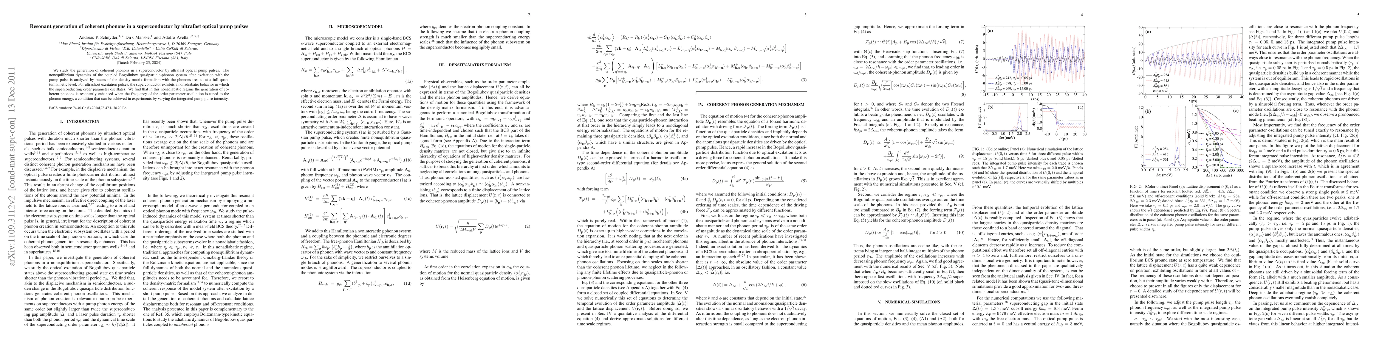 This paper investigates the resonant generation of coherent phonons in superconductors using ultrafast optical pump pulses, revealing that nonadiabatic behavior enhances phonon generation when the order-parameter oscillation frequency matches the phonon energy, which can be experimentally controlled by adjusting the pump pulse intensity.