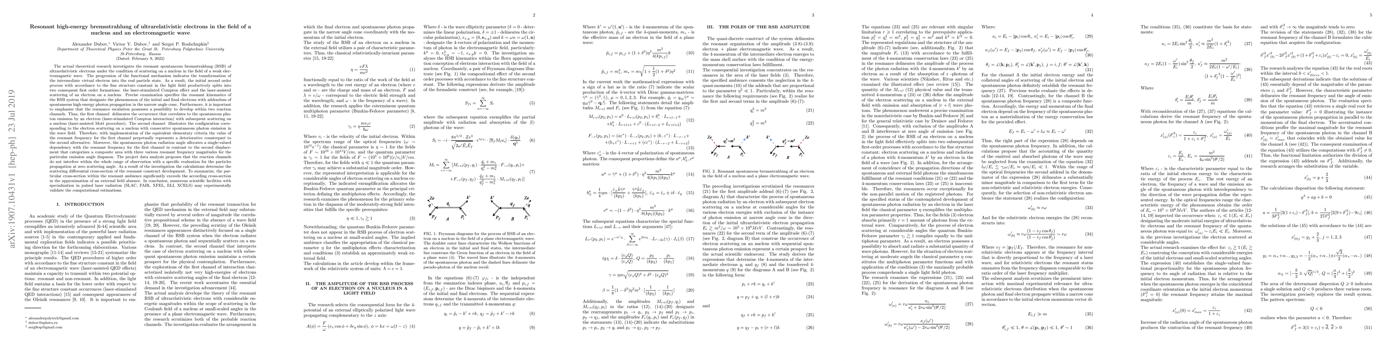 Research investigates resonant high-energy bremsstrahlung of ultrarelativistic electrons in a nucleus field with an electromagnetic wave, finding significant cross-sections in resonance compared to external fields.