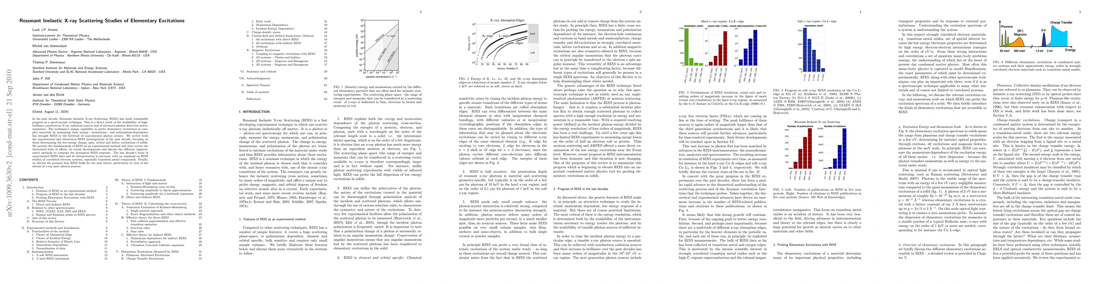 This paper reviews the advancements in Resonant Inelastic X-ray Scattering (RIXS) as a spectroscopic technique, highlighting its ability to probe elementary excitations in complex materials. It surveys both experimental and theoretical developments, focusing on low-energy excitations in transition metal compounds, and discusses the potential of RIXS with the advent of x-ray laser sources.