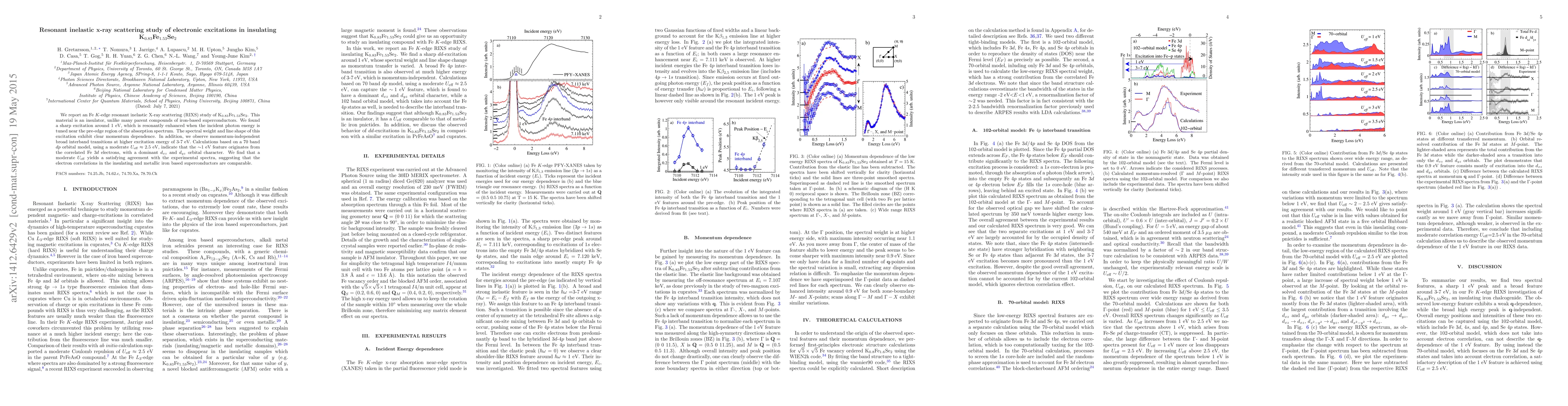We report an Fe $K$-edge resonant inelastic X-ray scattering (RIXS) study of K$_{0.83}$Fe$_{1.53}$Se$_2$. This material is an insulator, unlike many parent compounds of iron-based superconductors. We found a sharp excitation around 1 eV, which is resonantly enhanced when the incident photon energy is tuned near the pre-edge region of the absorption spectrum. The spectral weight and line shape of this excitation exhibit clear momentum dependence. In addition, we observe momentum-independent broad interband transitions at higher excitation energy of 3-7 eV. Calculations based on a 70 band $dp$ orbital model, using a moderate $U_{\rm eff}\approx 2.5$ eV, indicate that the $\sim$1 eV feature originates from the correlated Fe 3$d$ electrons, with a dominant $d_{xz}$ and $d_{yz}$ orbital character. We find that a moderate $U_{\rm eff}$ yields a satisfying agreement with the experimental spectra, suggesting that the electron correlations in the insulating and metallic iron based superconductors are comparable.