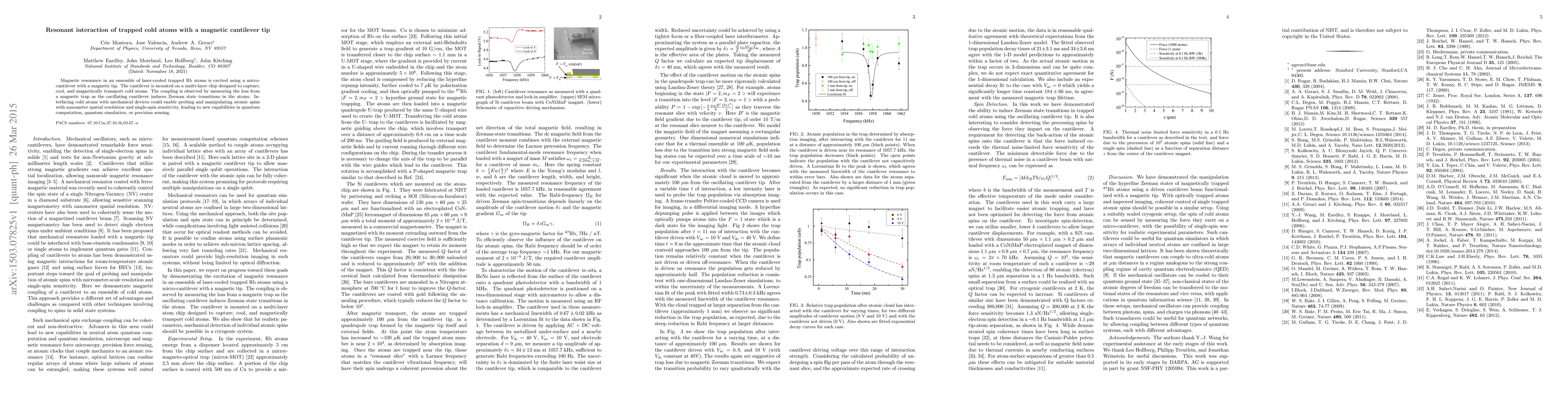Researchers successfully coupled magnetic resonance in trapped cold atoms with a vibrating cantilever tip, enabling precise manipulation of atomic spins for potential applications in quantum computing and sensing.