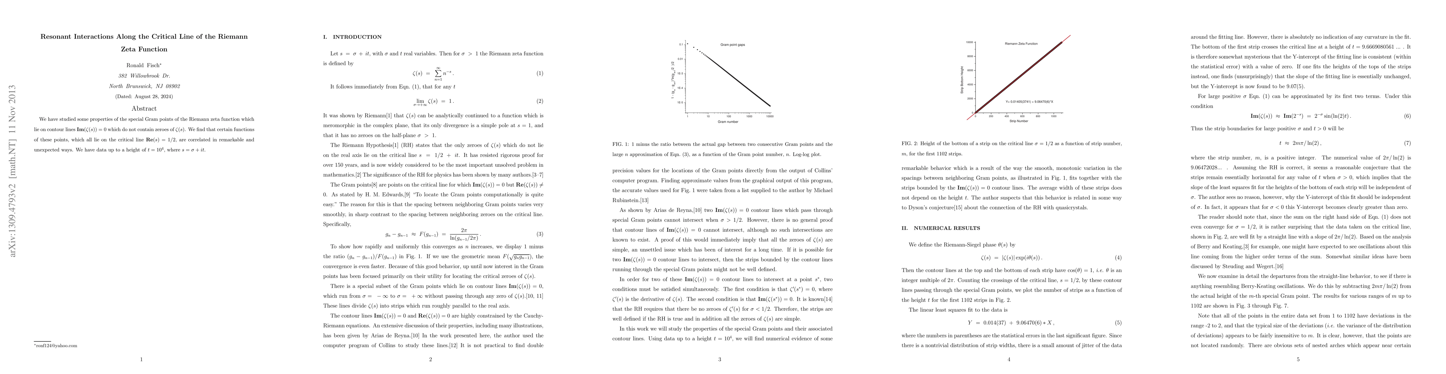 We have studied some properties of the special Gram points of the Riemann zeta function which lie on contour lines ${\bf Im}(\zeta ( s )) = 0$ which do not contain zeroes of $\zeta ( s )$. We find that certain functions of these points, which all lie on the critical line ${\bf Re}( s ) = 1/2$, are correlated in remarkable and unexpected ways. We have data up to a height of $t = 10^4$, where $s = \sigma + it$.
