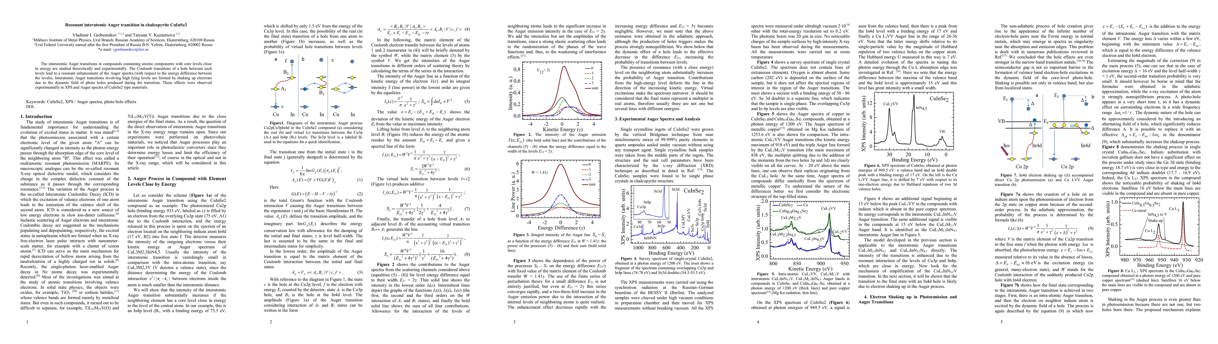 Researchers study interatomic Auger transitions in compounds like CuInSe2, finding resonant enhancements of Auger spectra due to Coulomb transitions between core levels, observed through XPS and Auger spectroscopy.