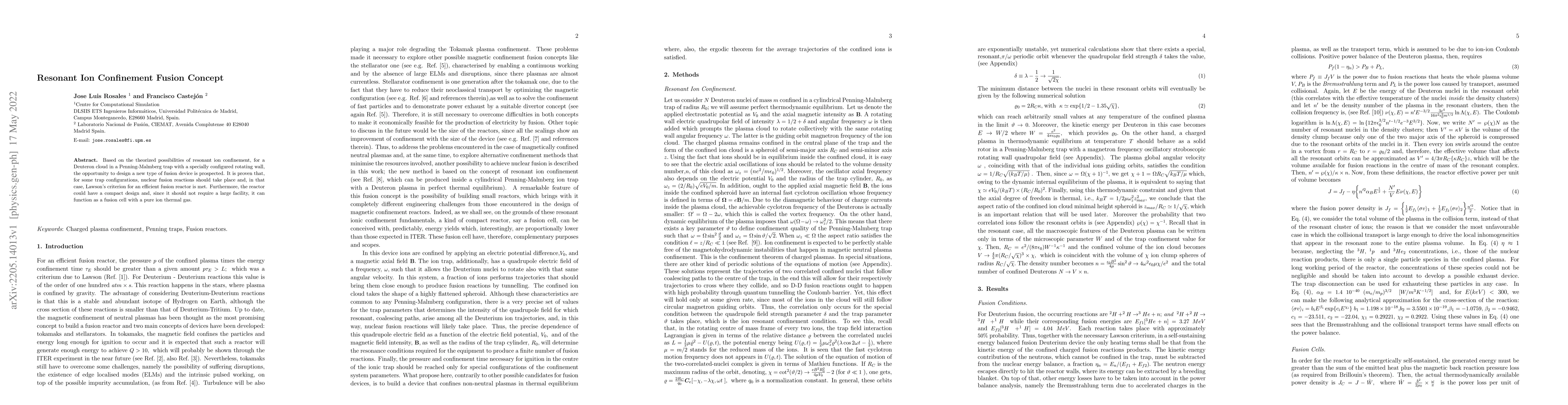 Researchers propose a new fusion device concept based on resonant ion confinement, which could lead to a compact and efficient fusion reactor with no large facility requirements. For certain trap configurations, nuclear fusion reactions are predicted to occur, meeting Lawson's criterion for efficient fusion.