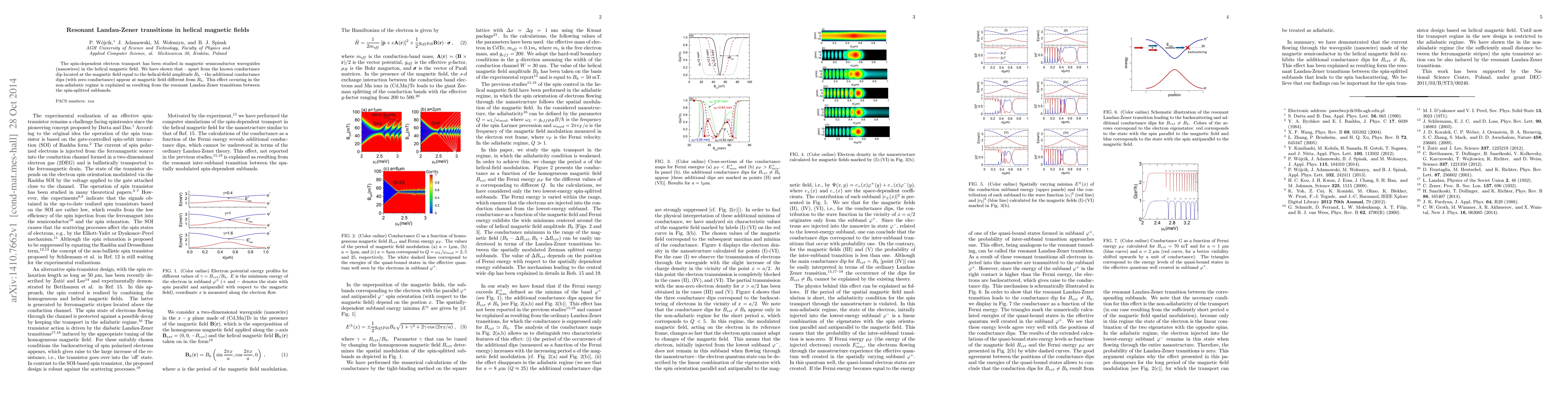 Researchers discovered additional conductance dips in magnetic semiconductor nanowires beyond a known dip at the helical field amplitude, attributed to resonant Landau-Zener transitions between spin-splitted subbands.