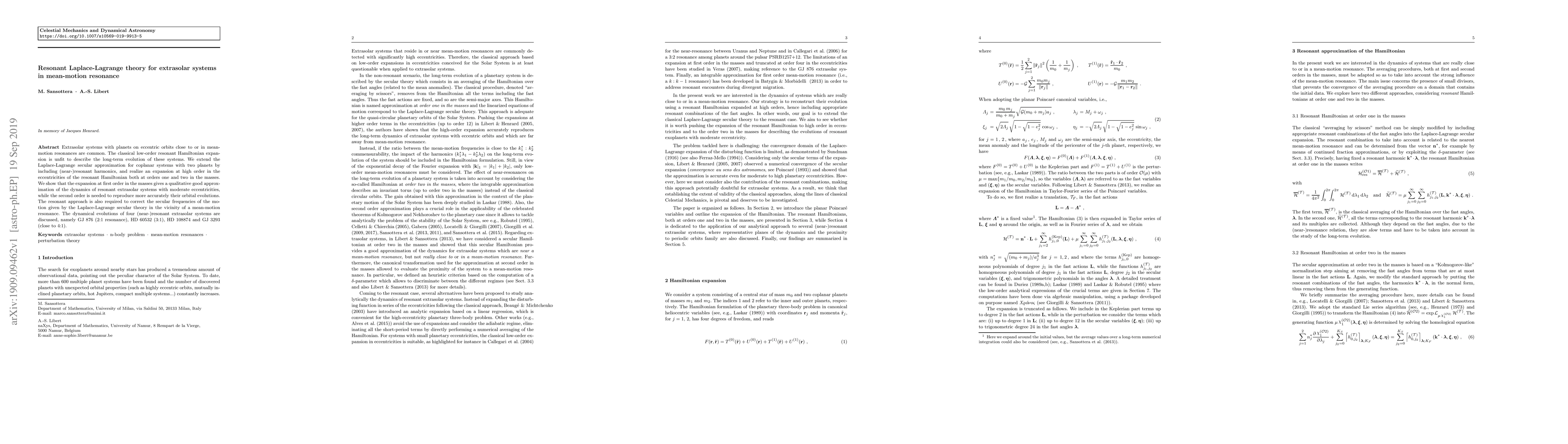 This paper proposes a high-order resonant Laplace-Lagrange theory to describe the long-term evolution of extrasolar systems in mean-motion resonance, showing that first-order mass expansion approximates dynamics well for moderate eccentricities, while second-order is needed for more precise predictions. The method corrects secular frequencies near mean-motion resonances.