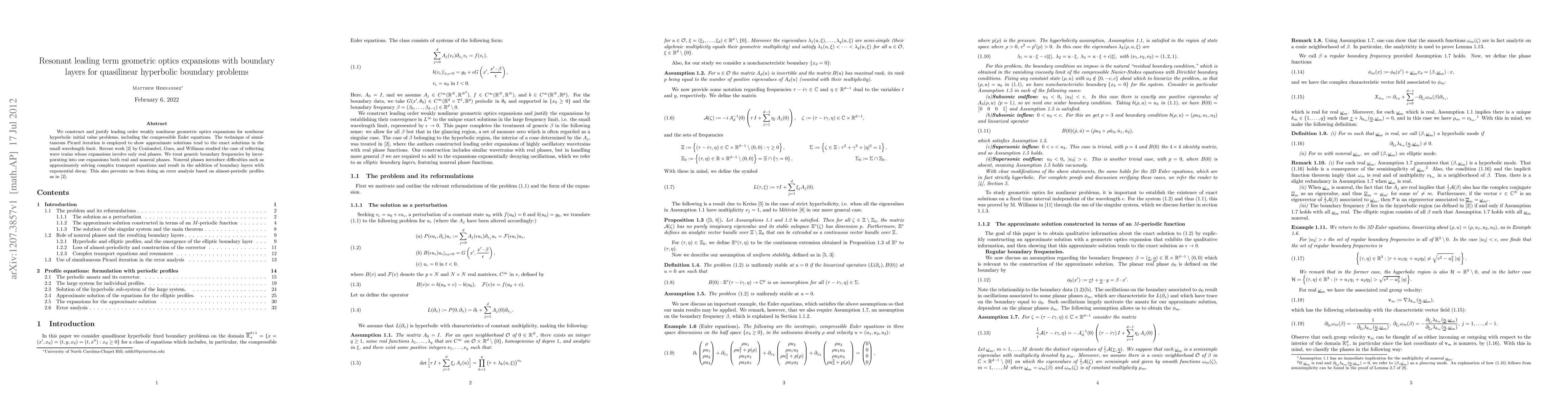Researchers develop a new method for solving hyperbolic boundary problems using geometric optics expansions, which can handle both real and nonreal phases, and show that approximate solutions tend to exact solutions in the small wavelength limit.