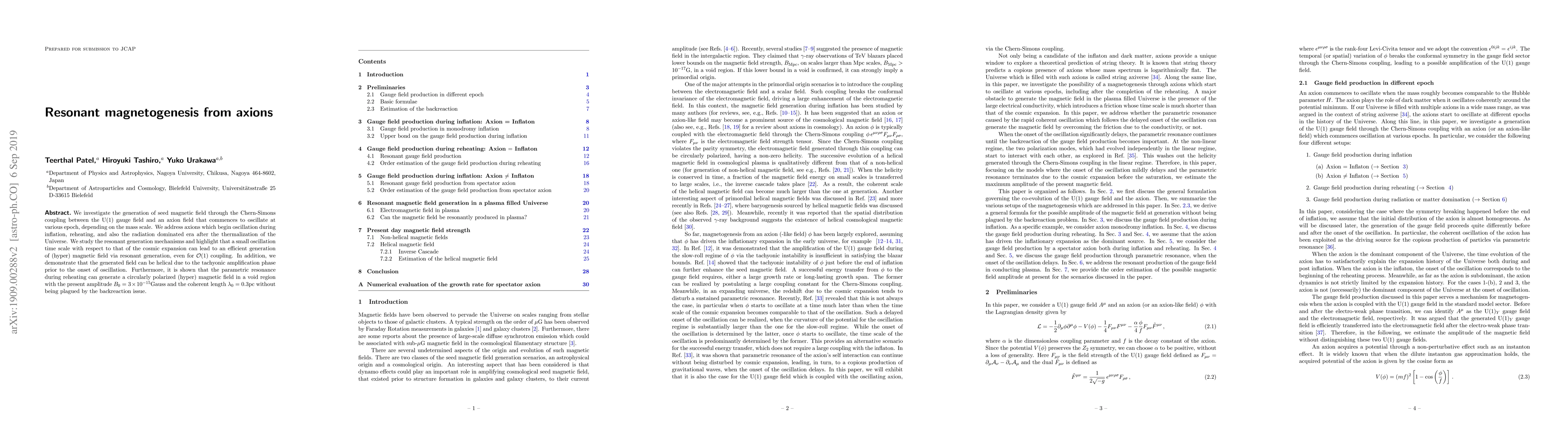 Researchers investigate how axions, hypothetical particles thought to help explain dark matter, can generate strong magnetic fields through a process called resonant magnetogenesis. They find that even small coupling between axions and the universe's magnetic field can lead to efficient generation of magnetic fields, including circularly polarized ones in specific regions.