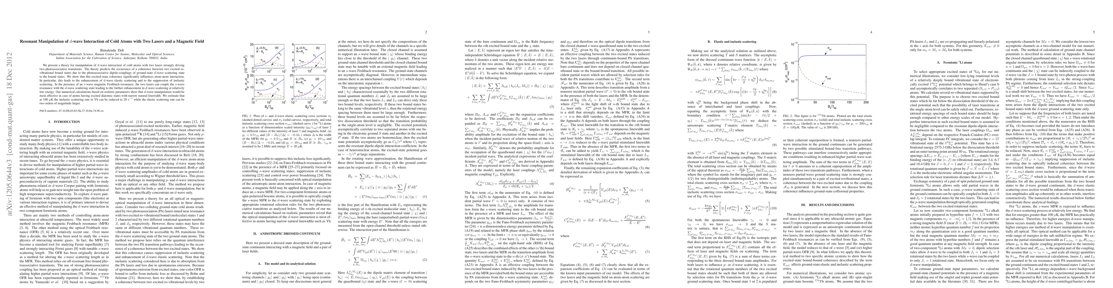 We present a theory for manipulation of d-wave interaction of cold atoms with two lasers strongly driving two photoassociative transitions. The theory predicts the occurrence of a coherence between two excited ro-vibrational bound states due to the photoassociative dipole-couplings of ground-state d-wave scattering state to the bound states. We show that this excited-state coherence significantly influences atom-atom interaction. In particular, this leads to the enhancement of d-wave elastic scattering and to the suppression of inelastic scattering. In the presence of an s-wave magnetic Feshbach resonance, the two lasers can couple the s-wave resonance with the d-wave scattering state leading to the further enhancement in d-wave scattering at relatively low energy. Our numerical calculations based on realistic parameters show that d-wave manipulation would be most effective in case of atoms having excited diatomic states with narrow natural linewidth. We estimate that at 100 $\mu$K the inelastic scattering rate in Yb can be reduced to 20 s$^{-1}$ while the elastic scattering rate can be two orders of magnitude larger.