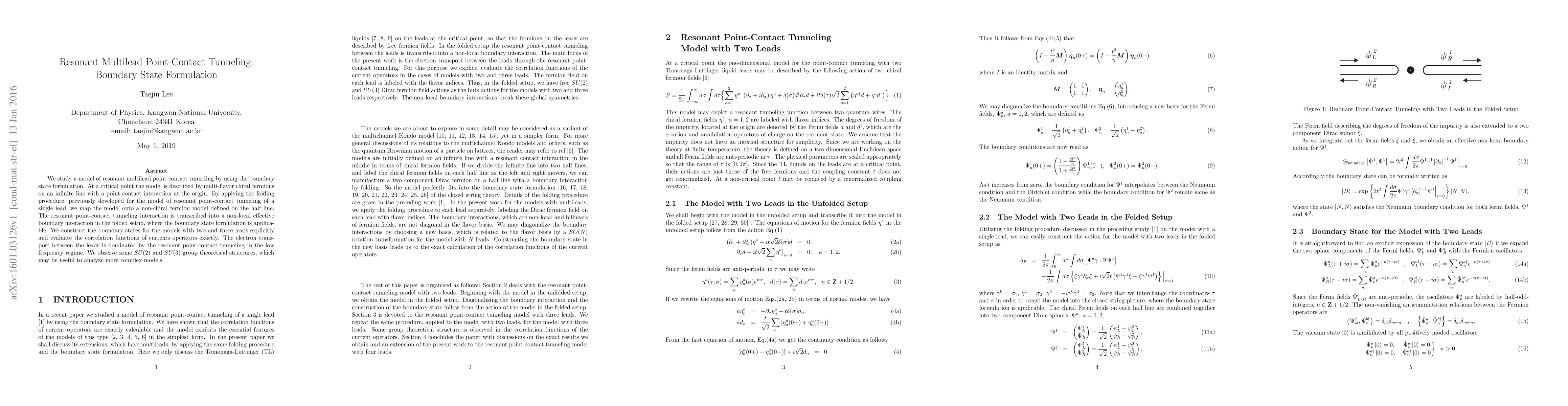 We study a model of resonant multilead point-contact tunneling by using the boundary state formulation. At a critical point the model is described by multi-flavor chiral fermions on an infinite line with a point contact interaction at the origin. By applying the folding procedure, previously developed for the model of resonant point-contact tunneling of a single lead, we map the model onto a non-chiral fermion model defined on the half line. The resonant point-contact tunneling interaction is transcribed into a non-local effective boundary interaction in the folded setup, where the boundary state formulation is applicable. We construct the boundary states for the models with two and three leads explicitly and evaluate the correlation functions of currents operators exactly. The electron transport between the leads is dominated by the resonant point-contact tunneling in the low frequency regime. We observe some $SU(2)$ and $SU(3)$ group theoretical structures, which may be useful to analyze more complex models.