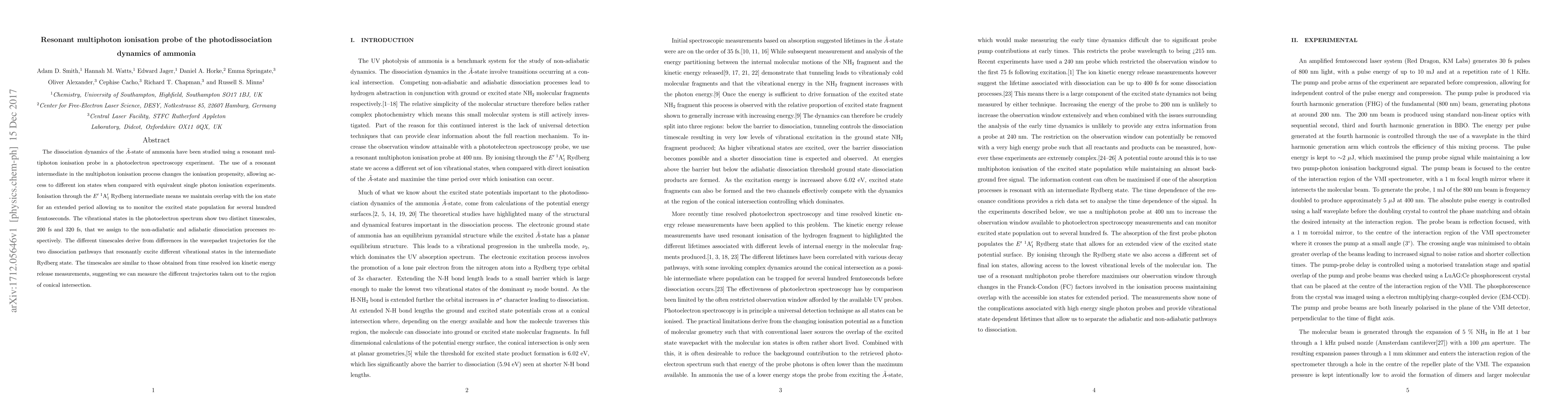 This study employs resonant multiphoton ionisation to probe the dissociation dynamics of ammonia's $\tilde{A}$-state, revealing two distinct timescales of 200 fs and 320 fs for non-adiabatic and adiabatic processes, respectively. The method allows monitoring of the excited state population over several hundred femtoseconds.