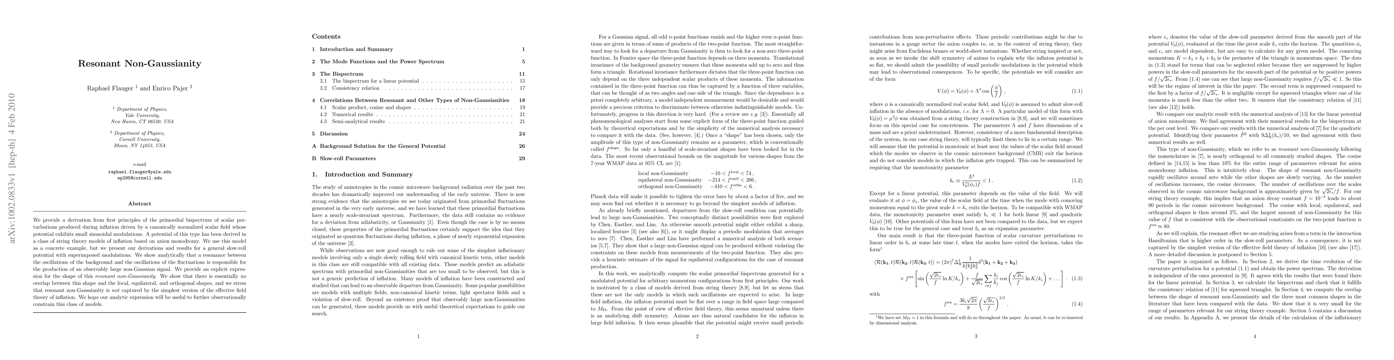 The paper presents a novel analytical derivation of the primordial bispectrum for models with sinusoidal potential modulations, identifying resonance as the origin of non-Gaussian signals and providing an explicit shape function for resonant non-Gaussianity.