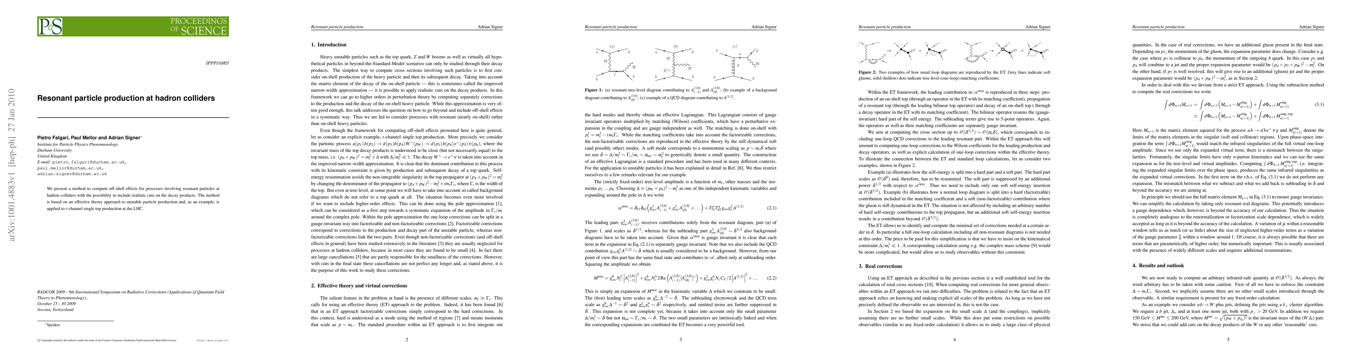 This paper introduces a method for computing off-shell effects in resonant particle production at hadron colliders using an effective theory approach, demonstrating its application to t-channel single top production at the LHC with realistic decay product cuts.
