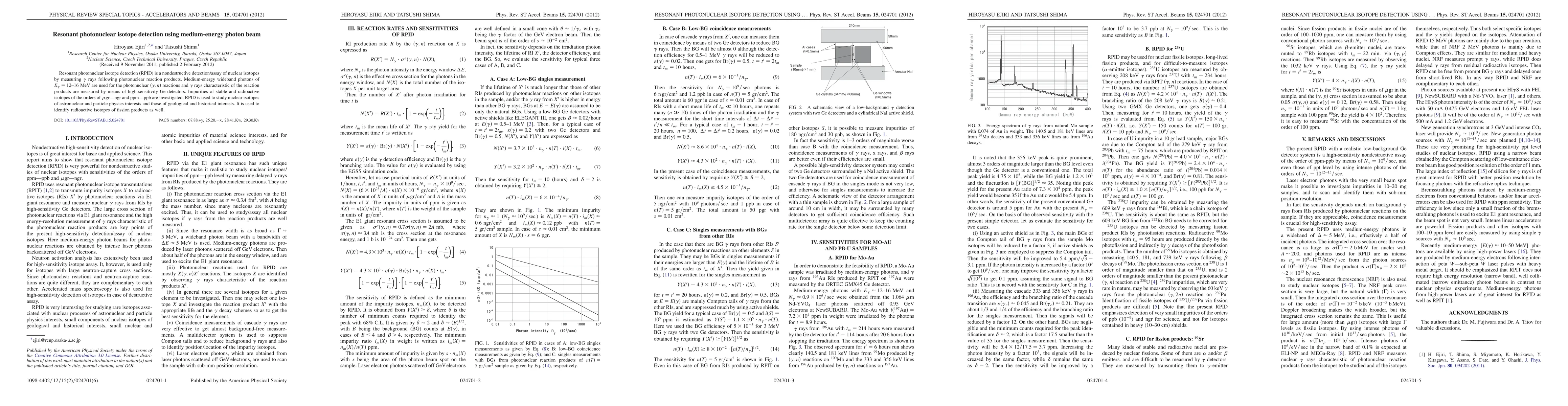 Resonant photonuclear isotope detection (RPID) is a nondestructive detection/assay of nuclear isotopes by measuring gamma rays following photonuclear reaction products. Medium-energy wideband photons of 12-16 MeV are used for the photonuclear reactions and gamma rays characteristic of the reaction products are measured by means of high-sensitivity Ge detectors. Impurities of stable and radioactive isotopes of the orders of micro-nano gr and ppm-ppb are investigated. RPID is used to study nuclear isotopes of astronuclear and particle physics interests and those of geological and historical interests. It is used to identify radioactive isotopes of fission products as well.