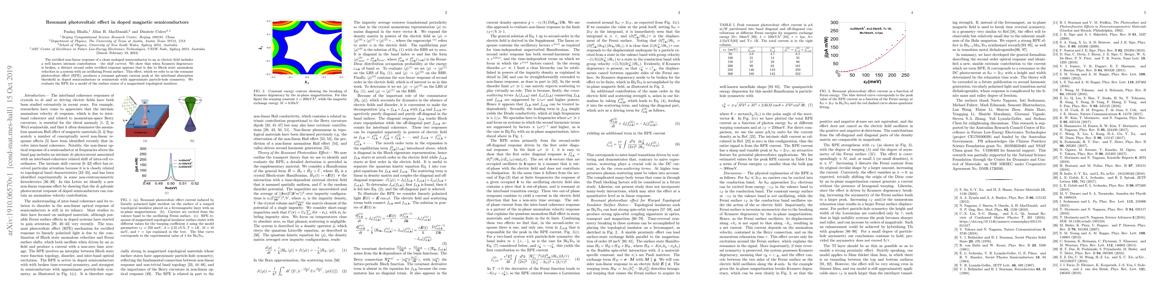 The rectified non-linear response of a clean undoped semiconductor to an AC electric field includes a well known intrinsic contribution -- the shift current. We show that when Kramers degeneracy is broken, a distinct second order rectified response appears that is due to Bloch state anomalous velocities in a system with an oscillating Fermi surface. This effect, which we refer to as the resonant photovoltaic effect (RPE), produces a resonant galvanic current peak at the interband absorption threshold in doped semiconductors or semimetals with approximate particle-hole symmetry. We evaluate the RPE for a model of the surface states of a magnetized topological insulator.