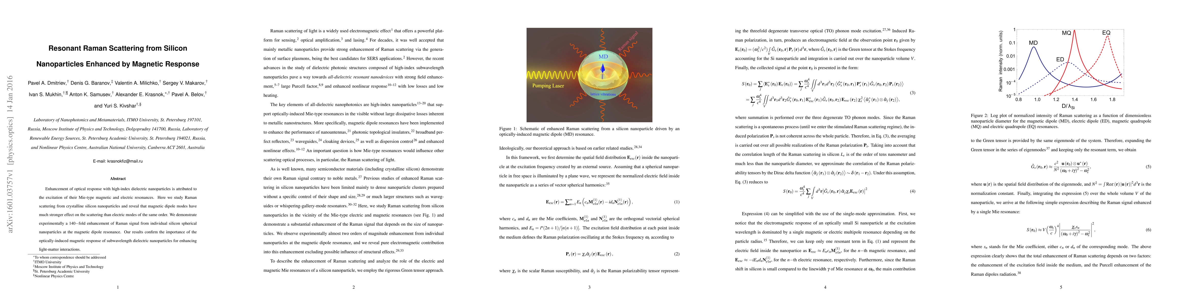 This study investigates the enhancement of Raman scattering from silicon nanoparticles due to their magnetic dipole resonances, showing a 140-fold increase in signal compared to electric modes. The findings underscore the significant role of magnetic responses in improving light-matter interactions in nanoscale dielectric materials.