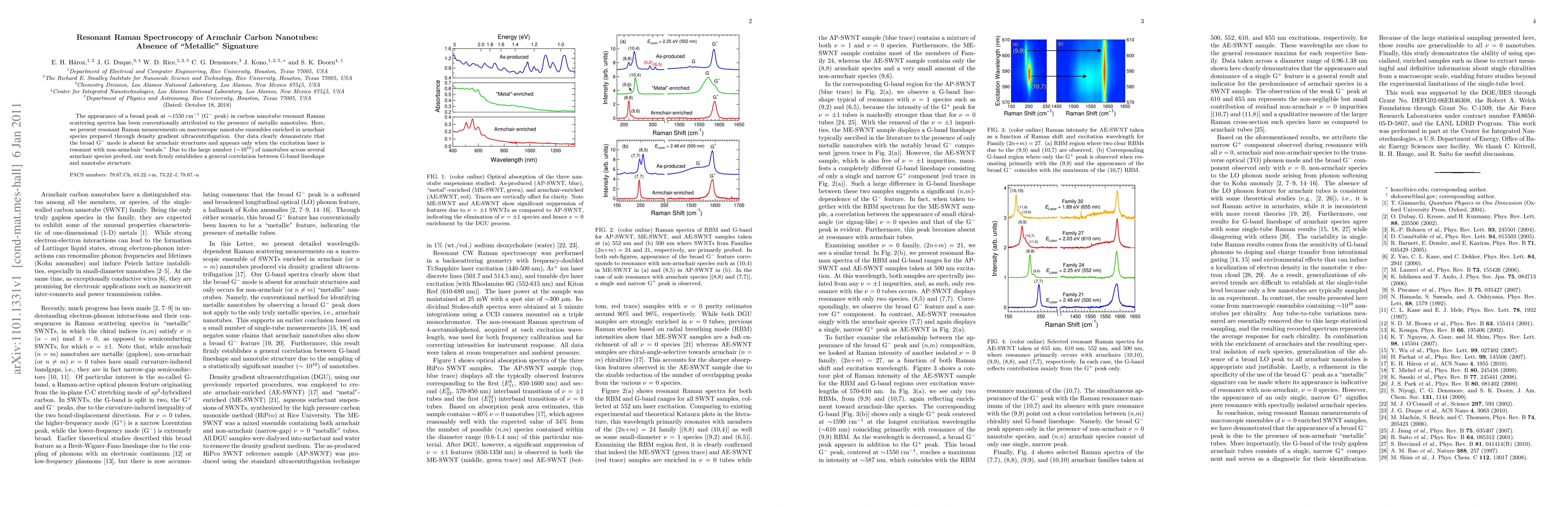 The appearance of a broad peak at $\sim$1550 cm$^{-1}$ (G$^{-}$ peak) in carbon nanotube resonant Raman scattering spectra has been conventionally attributed to the presence of metallic nanotubes. Here, we present resonant Raman measurements on macroscopic nanotube ensembles enriched in armchair species prepared through density gradient ultracentrifugation. Our data clearly demonstrate that the broad G$^{-}$ mode is absent for armchair structures and appears only when the excitation laser is resonant with non-armchair "metals." Due to the large number ($\sim$10$^{10}$) of nanotubes across several armchair species probed, our work firmly establishes a general correlation between G-band lineshape and nanotube structure.