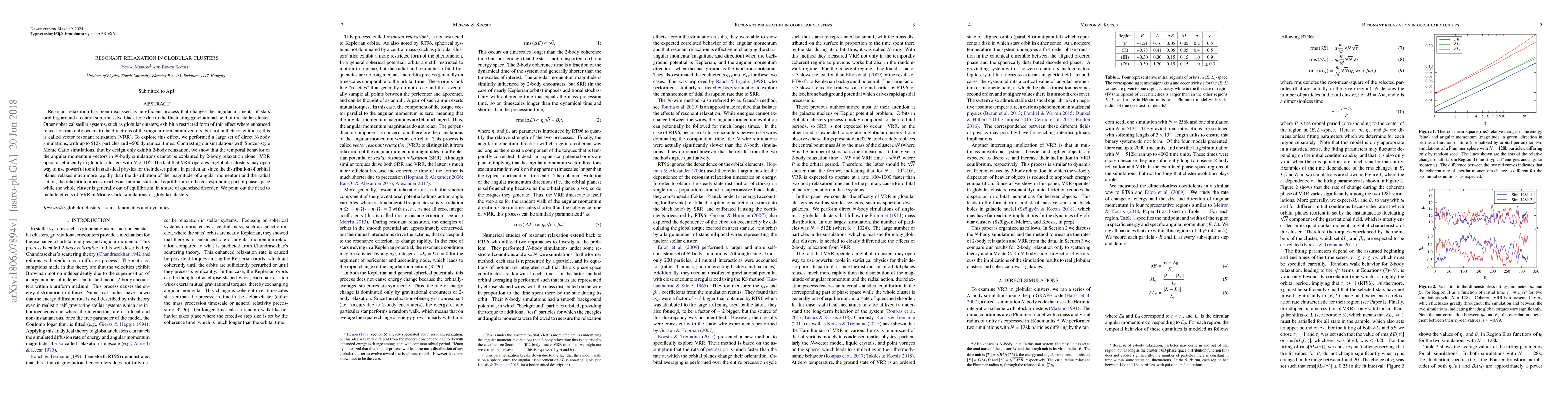 Resonant relaxation has been discussed as an efficient process that changes the angular momenta of stars orbiting around a central supermassive black hole due to the fluctuating gravitational field of the stellar cluster. Other spherical stellar systems, such as globular clusters, exhibit a restricted form of this effect where enhanced relaxation rate only occurs in the directions of the angular momentum vectors, but not in their magnitudes; this is called vector resonant relaxation (VRR). To explore this effect, we performed a large set of direct N-body simulations, with up to 512k particles and ~500 dynamical times. Contrasting our simulations with Spitzer-style Monte Carlo simulations, that by design only exhibit 2-body relaxation, we show that the temporal behavior of the angular momentum vectors in $N$-body simulations cannot be explained by 2-body relaxation alone. VRR operates efficiently in globular clusters with $N>10^4$. The fact that VRR operates in globular clusters may open way to use powerful tools in statistical physics for their description. In particular, since the distribution of orbital planes relaxes much more rapidly than the distribution of the magnitude of angular momentum and the radial action, the relaxation process reaches an internal statistical equilibrium in the corresponding part of phase space while the whole cluster is generally out of equilibrium, in a state of quenched disorder. We point out the need to include effects of VRR in Monte Carlo simulations of globular clusters.