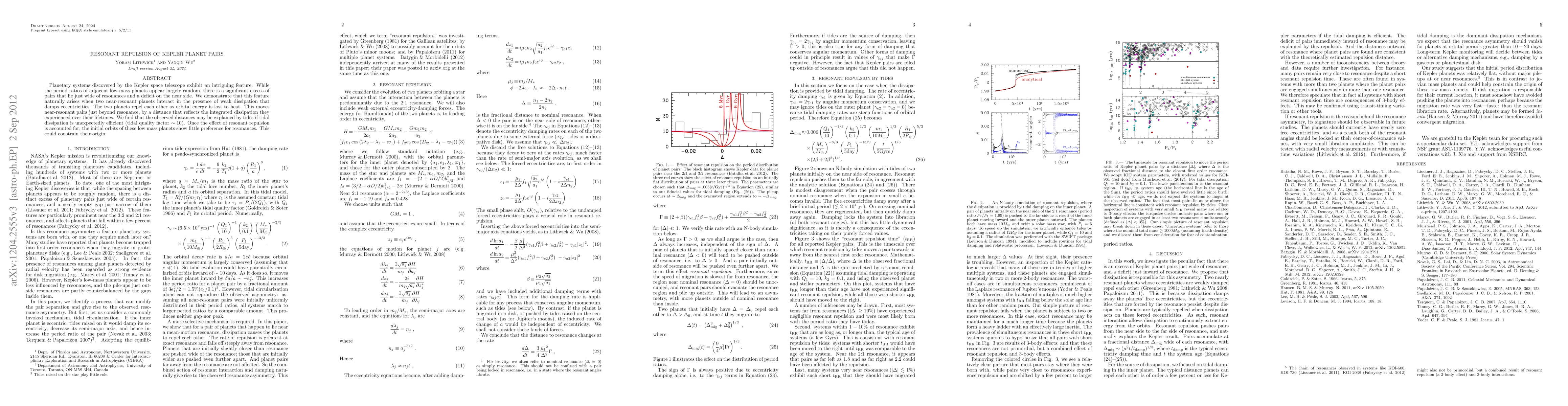 This paper demonstrates that Kepler's low-mass planet pairs often lie just outside resonances due to resonant repulsion driven by tidal dissipation, which moves them away from exact resonance as orbital energy is converted to heat. This effect suggests that initial planet orbits may not inherently favor resonances, providing insight into their formation.