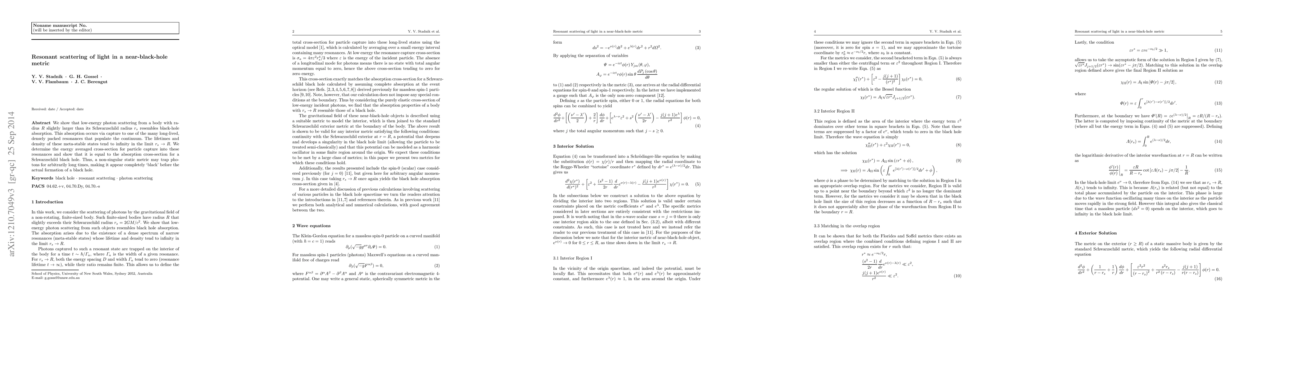 This paper demonstrates that low-energy photon scattering near a body slightly larger than its Schwarzschild radius exhibits black-hole-like absorption due to long-lived resonances. The study finds that the absorption cross-section for these resonances equals that of a Schwarzschild black hole, indicating that non-singular static metrics can appear "black" without forming a black hole.