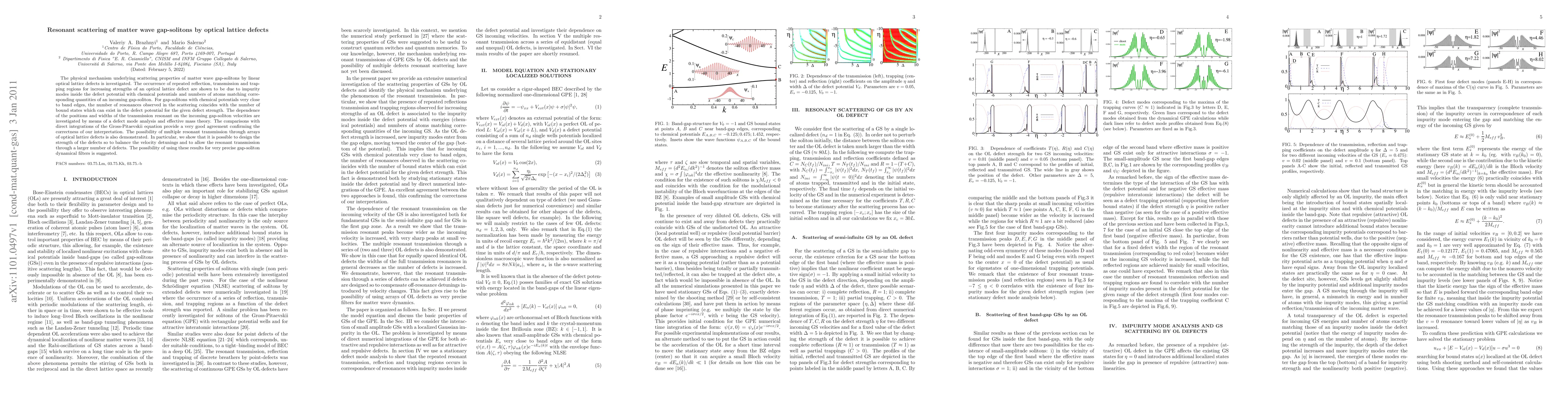 This paper investigates the scattering behavior of matter wave gap-solitons in optical lattices, revealing that resonant transmission and trapping are due to impurity modes matching soliton properties. The study suggests precise dynamical filtering applications using designed optical lattice defect strengths.