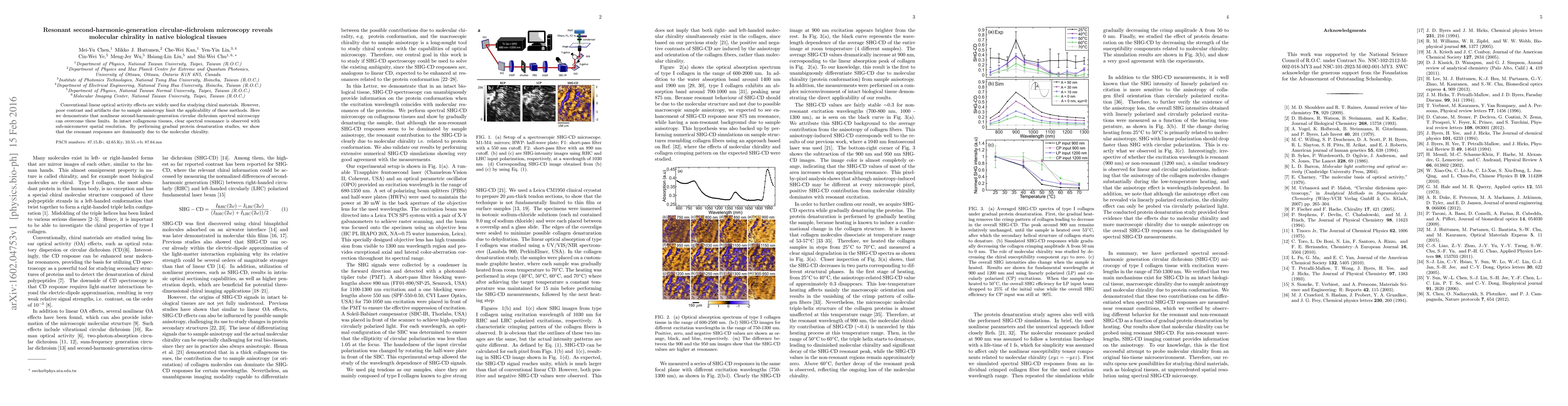 This study employs nonlinear second-harmonic-generation circular dichroism microscopy to reveal molecular chirality in native biological tissues, achieving better contrast and overcoming anisotropy artifacts compared to conventional methods. The technique demonstrates clear spectral resonance and sub-micrometer resolution in intact collagenous tissues.