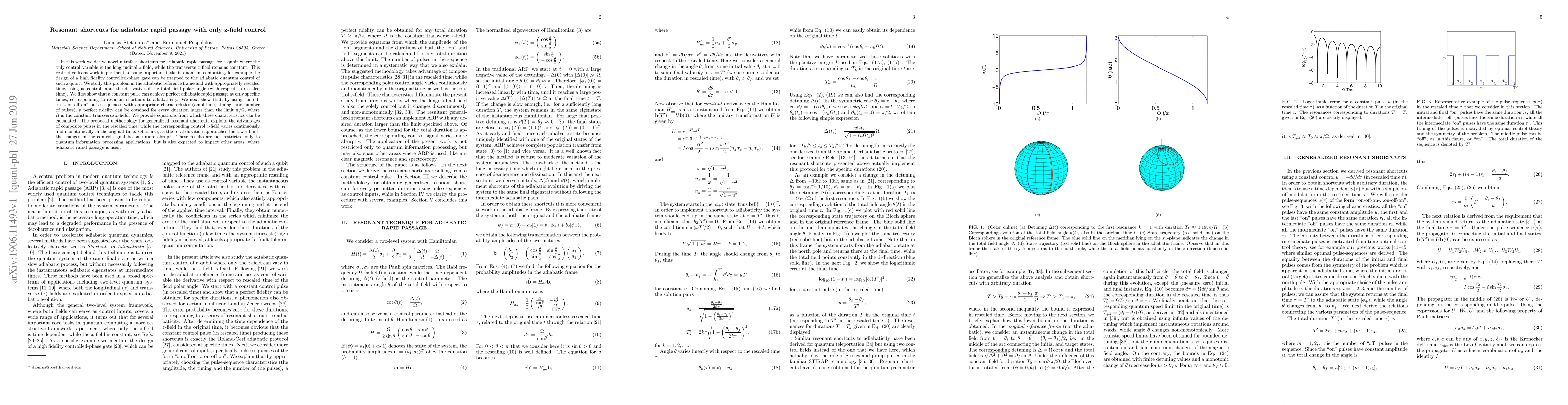 In this work we derive novel ultrafast shortcuts for adiabatic rapid passage for a qubit where the only control variable is the longitudinal $z$-field, while the transverse $x$-field remains constant. This restrictive framework is pertinent to some important tasks in quantum computing, for example the design of a high fidelity controlled-phase gate can be mapped to the adiabatic quantum control of such a qubit. We study this problem in the adiabatic reference frame and with appropriately rescaled time, using as control input the derivative of the total field polar angle (with respect to rescaled time). We first show that a constant pulse can achieve perfect adiabatic rapid passage at only specific times, corresponding to resonant shortcuts to adiabaticity. We next show that, by using "on-off-on-...-on-off-on" pulse-sequences with appropriate characteristics (amplitude, timing, and number of pulses), a perfect fidelity can be obtained for every duration larger than the limit $\pi/\Omega$, where $\Omega$ is the constant transverse $x$-field. We provide equations from which these characteristics can be calculated. The proposed methodology for generalized resonant shortcuts exploits the advantages of composite pulses in the rescaled time, while the corresponding control $z$-field varies continuously and monotonically in the original time. Of course, as the total duration approaches the lower limit, the changes in the control signal become more abrupt. These results are not restricted only to quantum information processing applications, but is also expected to impact other areas, where adiabatic rapid passage is used.