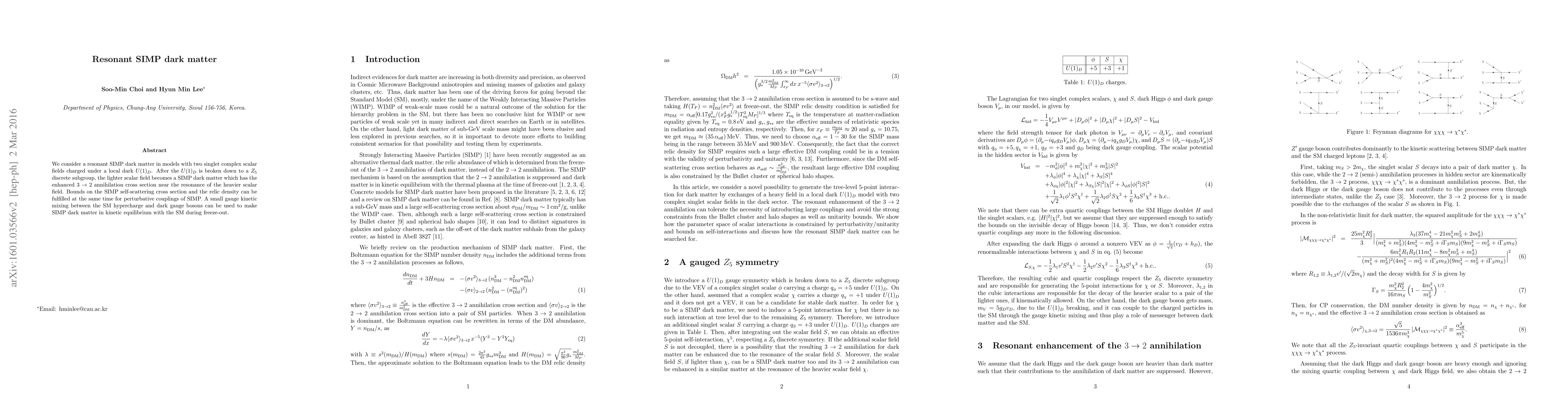 This paper explores resonant Self-Interacting Massive Particle (SIMP) dark matter in models with two singlet complex scalar fields, where the lighter field becomes dark matter with enhanced annihilation cross-section near the resonance of the heavier field. It demonstrates that these models can satisfy both self-scattering bounds and relic density constraints for perturbative couplings.