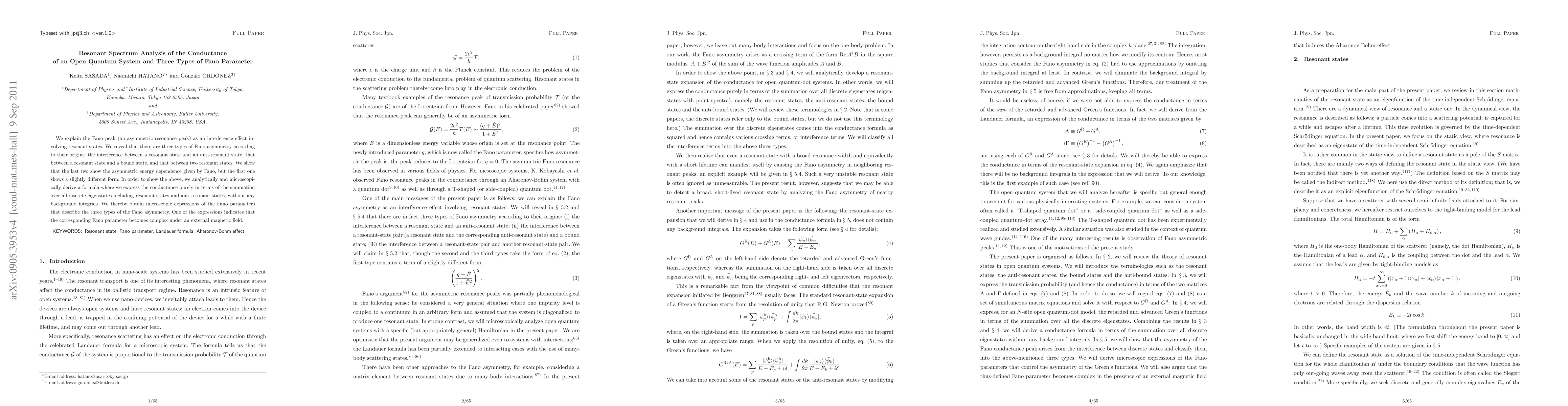 This paper analyzes the conductance of open quantum systems, identifying three types of Fano asymmetry based on different interference effects. It derives analytical expressions for the Fano parameters, showing that the asymmetry results from interactions between resonant, anti-resonant, and bound states, with one parameter becoming complex under an external magnetic field.