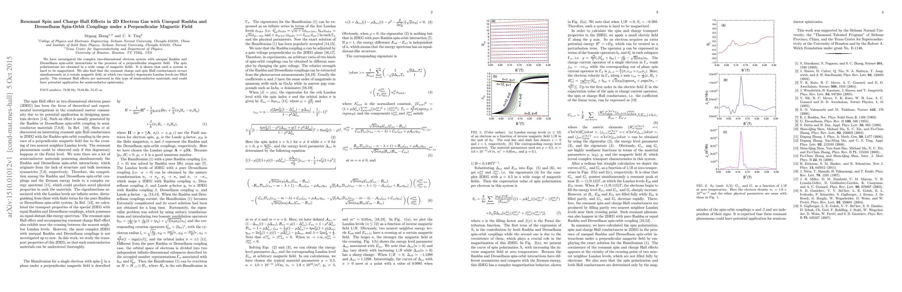 This paper investigates a 2D electron system with unequal Rashba and Dresselhaus spin-orbit interactions under a perpendicular magnetic field, revealing that it is difficult to magnetize. The study finds resonant charge and spin Hall conductances occurring simultaneously at specific magnetic fields, suggesting potential applications for semiconductor spintronics.