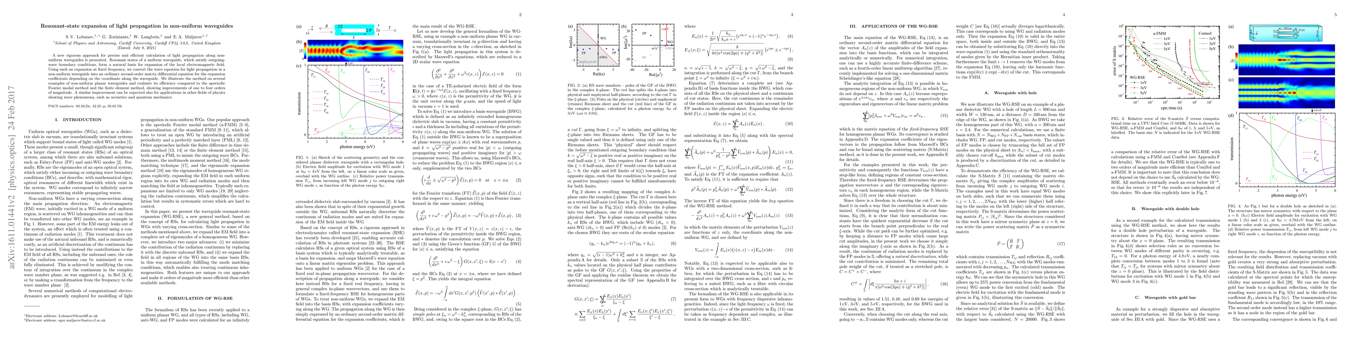 This paper introduces a new method for calculating light propagation in non-uniform waveguides using resonant states from uniform waveguides, converting the wave equation into a matrix differential equation. The method shows significant efficiency improvements over existing techniques, with potential applications in acoustics and quantum mechanics.
